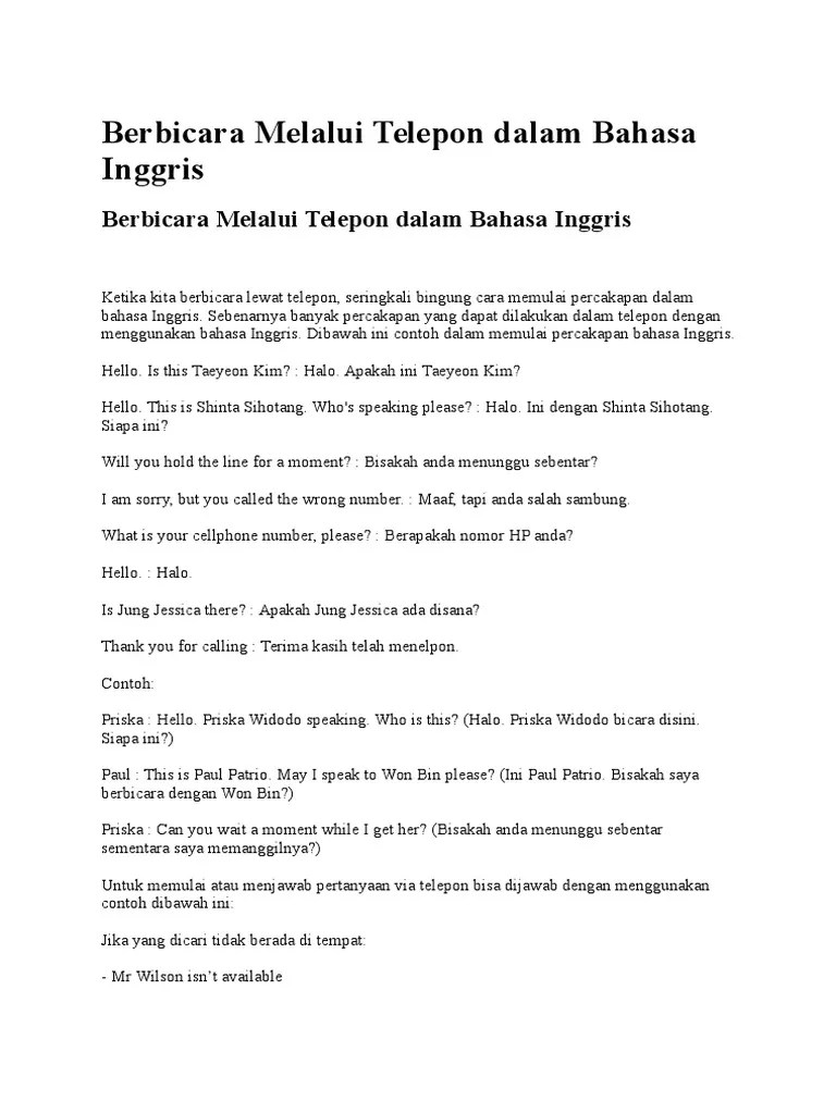 Bahasa inggris merupakan modal besar bagi para pencari kerja. Berikut pertanyaan yang sering ditanyakan saat interview kerja bahasa . Kebetulan sekali pada artikel berikut ini admin memberikan sebuah contoh percakapan saat interview atau wawancara kerja. Dengan mempelajari materi contoh percakapan tes wawancara dan materi job interview dalam bahasa inggris maka . Hello, nice to meet you. I do well, and yourself? Tak jarang perusahaan sering kali mengutamakan mereka yang memiliki skil dalam . Berikut adalah contoh percakapan interview kerja antara seorang job . Dalam suatu wawancara kerja (job interview), biasanya calon karyawan akan diberikan pertanyaan mengenai latar belakang kehidupan, . (mengapa kamu meninggalkan pekerjaan terakhir kamu?) dalam sebuah wawancara bahasa inggris maupun bahasa indonesia, pertanyaan . Why did you leave your last job? Ini merupakan bentuk percakapan interview kerja dalam bahasa inggris yang paling umum. Glad to meet you too, how do you do today?
